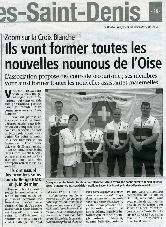 Un Article de presse sur la Croix Blanche de l’Oise est paru dans le journal « Le Bonhomme Picard » du mercredi 21 juillet 2010 écrit par Fanny Lebegue.